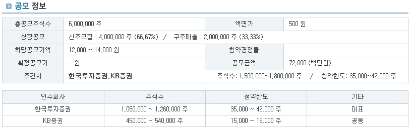 • 총 공모주식수 : 6,000,000주 (액면가 500원)
